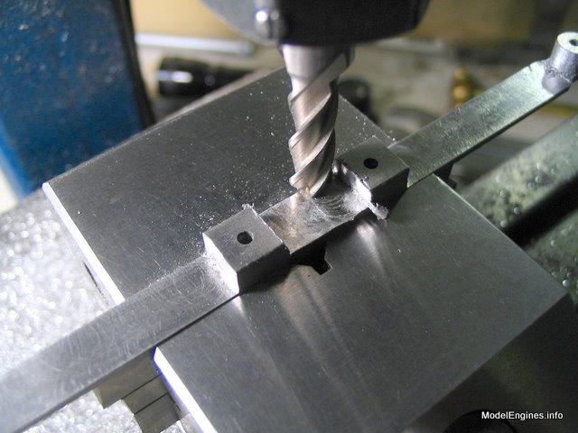 This page covers machining the four drag links from two bars of steel. Each pair surrounds a curved expansion link so that those links can be moved in unison when the reversing shaft is rotated.