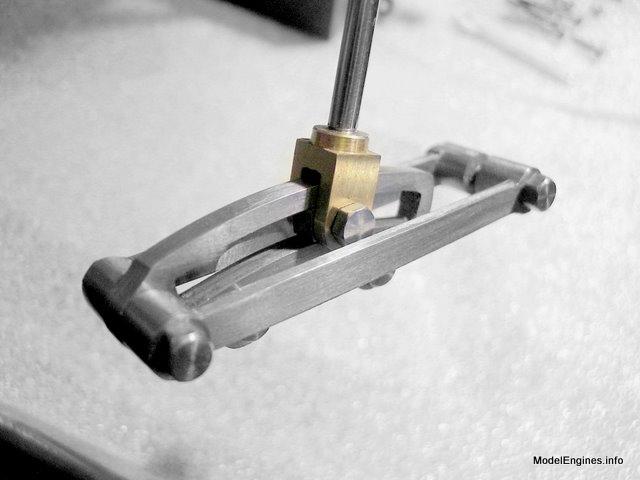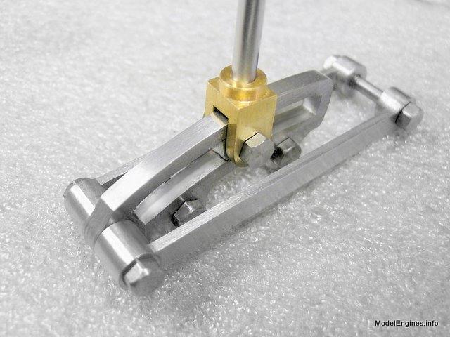 By threading the holes on the two inside links, the nuts will act as locknuts. My previous engine sometimes drops a nut in action and I am determined to prevent it by mechanical means without the use of chemical threadlockers.